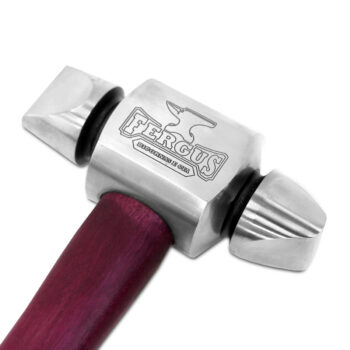 Martelo de Forjar Pena Invertida Fergus – A ferramenta essencial para ferreiros e cuteleiros que buscam precisão e versatilidade na forja. Feito em aço SAE 4140, com uma dureza de 58 Rockwell C, sua face pena invertida oferece controle excepcional em detalhes e curvas. Cabo de madeira Roxinho para conforto durante o uso. Clique para mais informações!